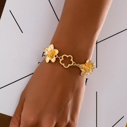 18K Gold-Plated Stainless Steel Geometric Bracelet and Ring Jewelry Set