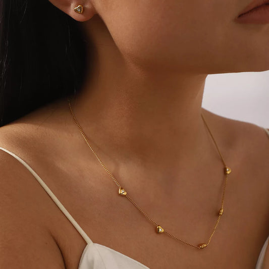18K Gold-Plated Heart Earrings & Bracelet and Necklace Jewelry Set