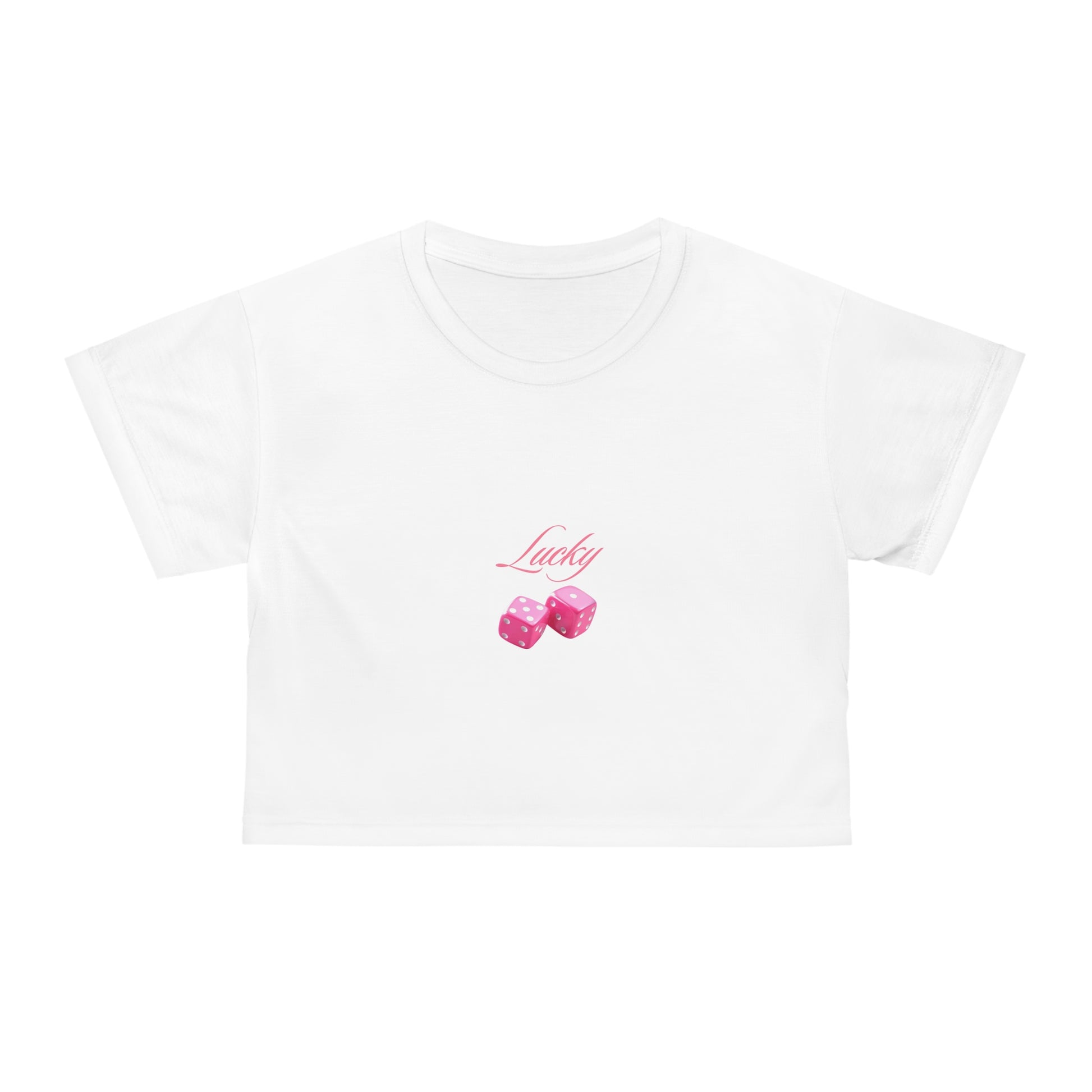 Featuring playful pink dice and the word "Lucky" in bold, eye-catching lettering, this cropped tee brings a dash of luck and style to any outfit. Made from soft, breathable fabric, it’s perfect for a casual day out or a game night out with friends!